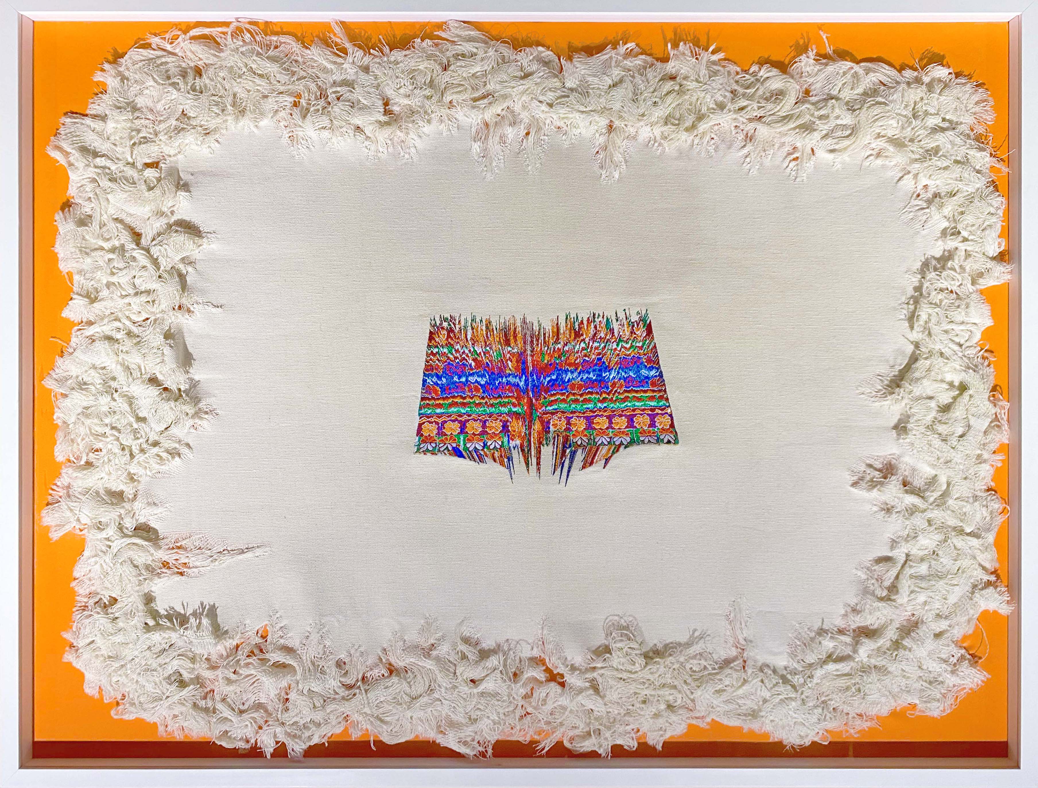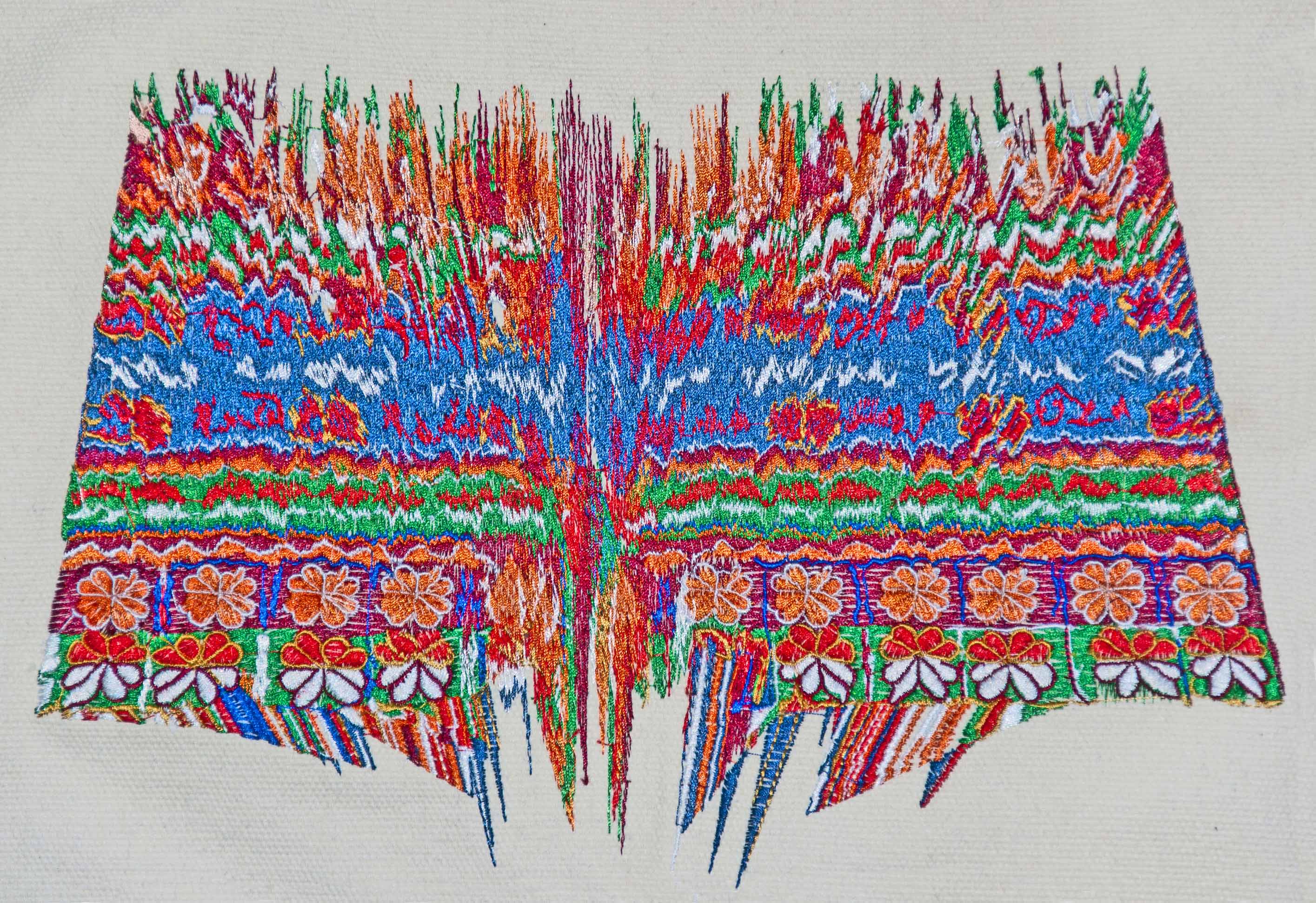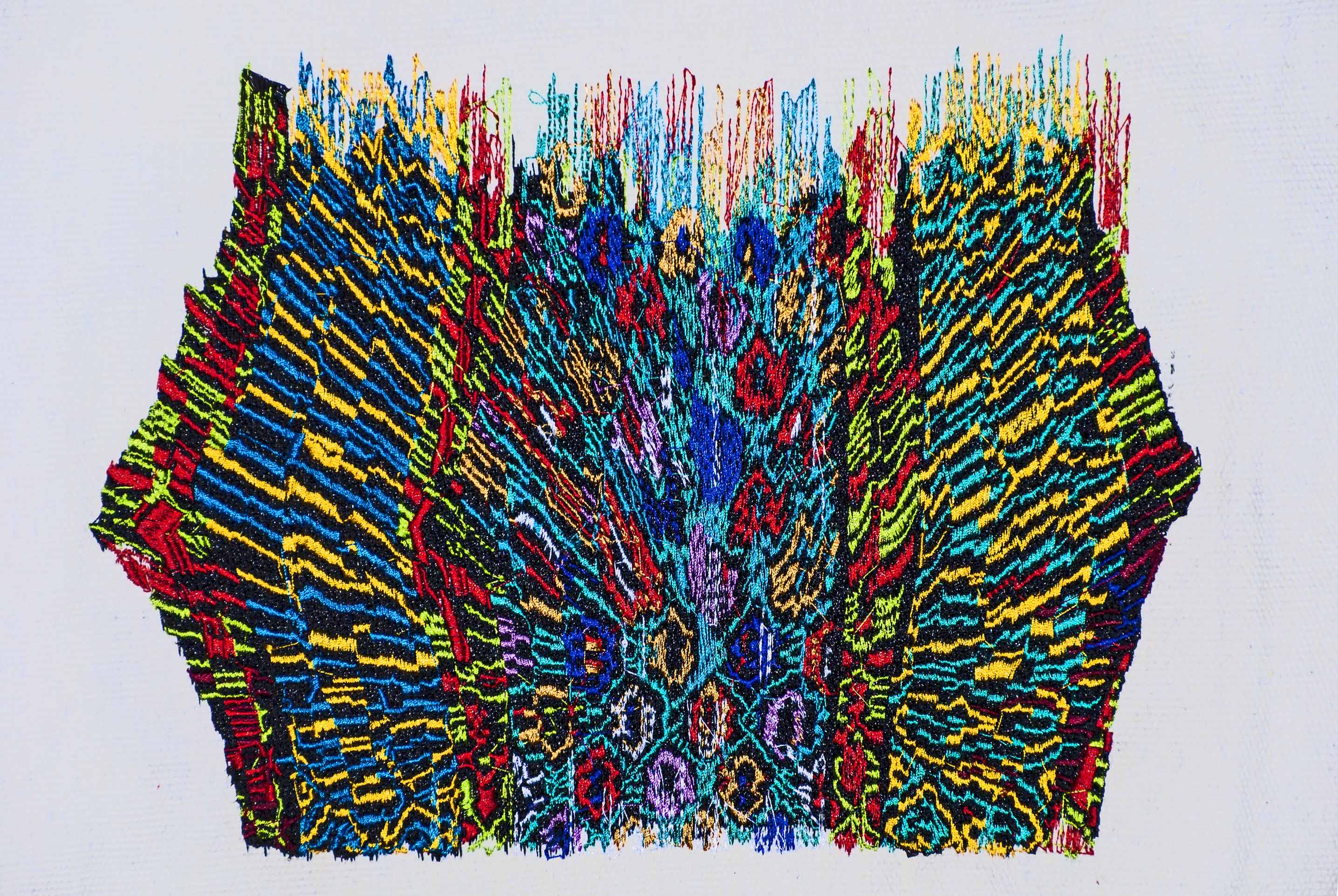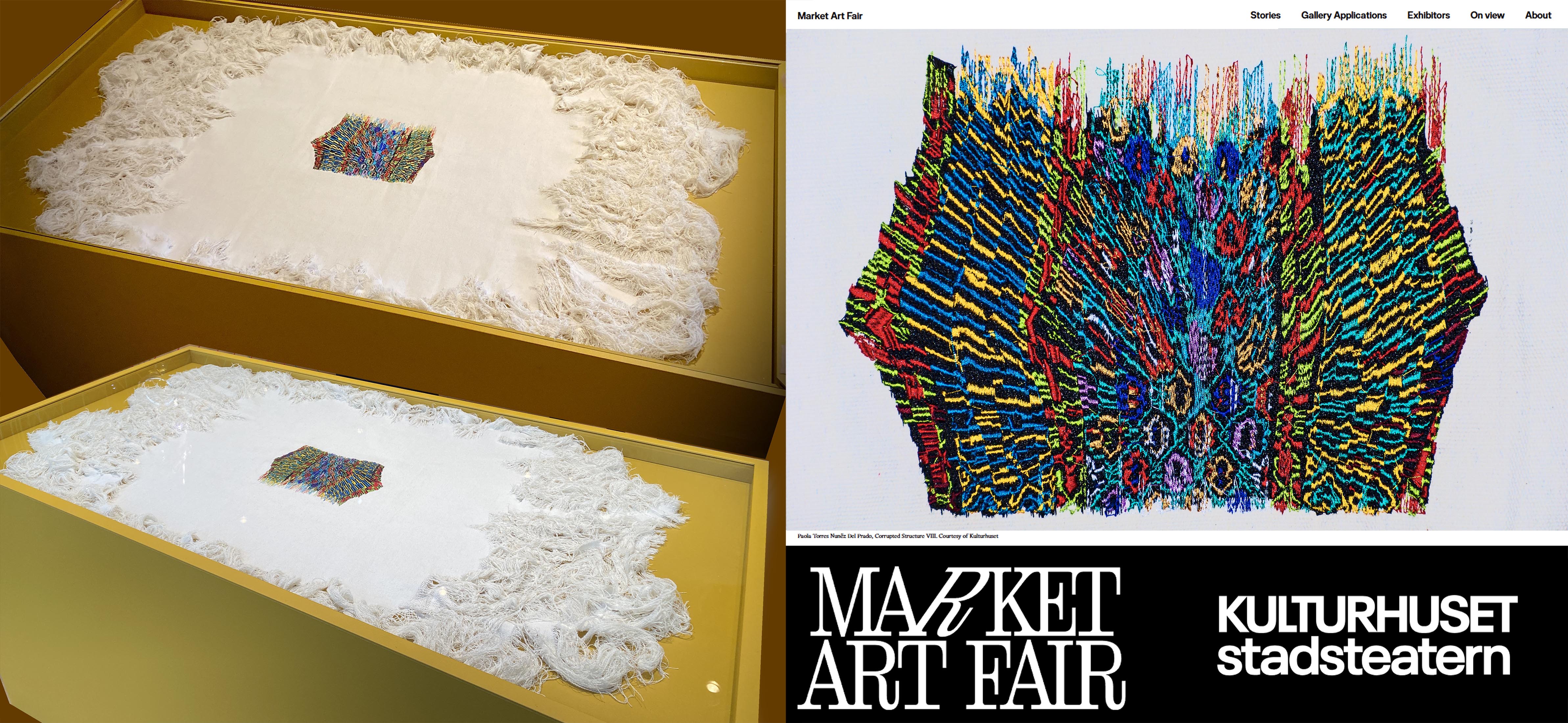 "Questions about the historically low value of textiles, their aesthetics, politics, representation, tactility, vision and material come together in the exhibition [Textila Undertexter]. (...) Paola Torres Nuñez del Prado shows her electronic embroidery on canvas where the post-colonial criticism is closely woven through pattern and its process. " Milou Allerholm Art Historian (Sweden) Extract of Dagens Nyheter publication(main Swedish newspaper) 2016 "Embroidery refers to traditional Peruvian textiles of the past and present where the pattern has been distorted by a contrasting sound, which has been added by displacing the original digital design that the embroidery creates. These Corrupt Structures show traditional knowledge destroyed in the process of searching for minerals or ancestral structures that have been deformed by colonialism." Helena Selder Curator (Sweden) Undertexter Textile Catalog 2016